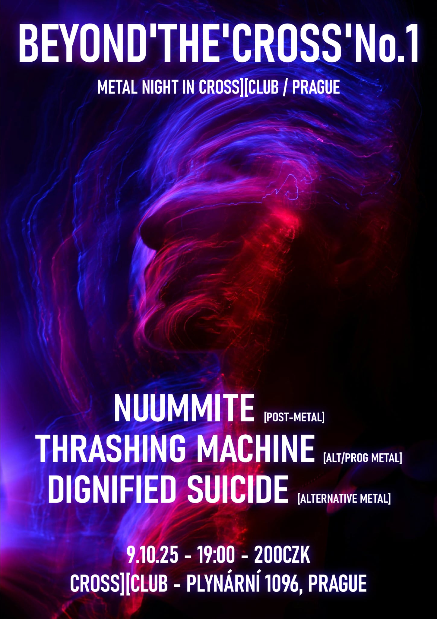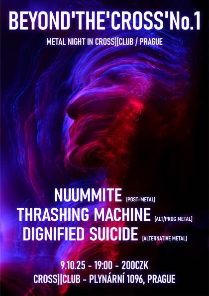 Cross otevře brány noci, kde metal není jen hudba, ale stav mysli. Nuummite, Thrashing Machine a Dignified Suicide tě vtáhnou do temný atmosféry, která tě jen tak nepustí.