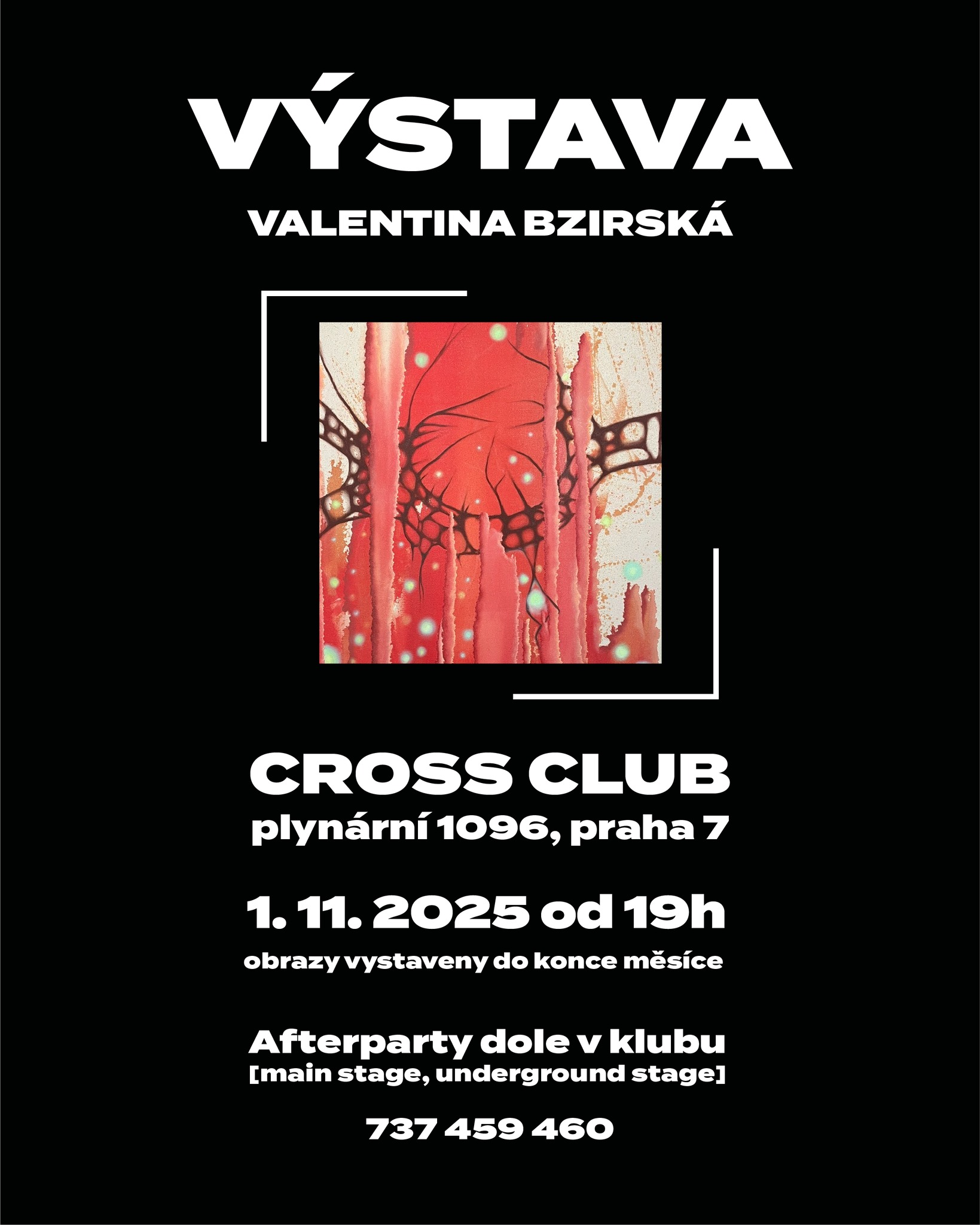 Vernisáž výstavy obrazů a grafik Valentiny Bzirské v prostorách kavárny klubu Cross v sobotu od 19.00