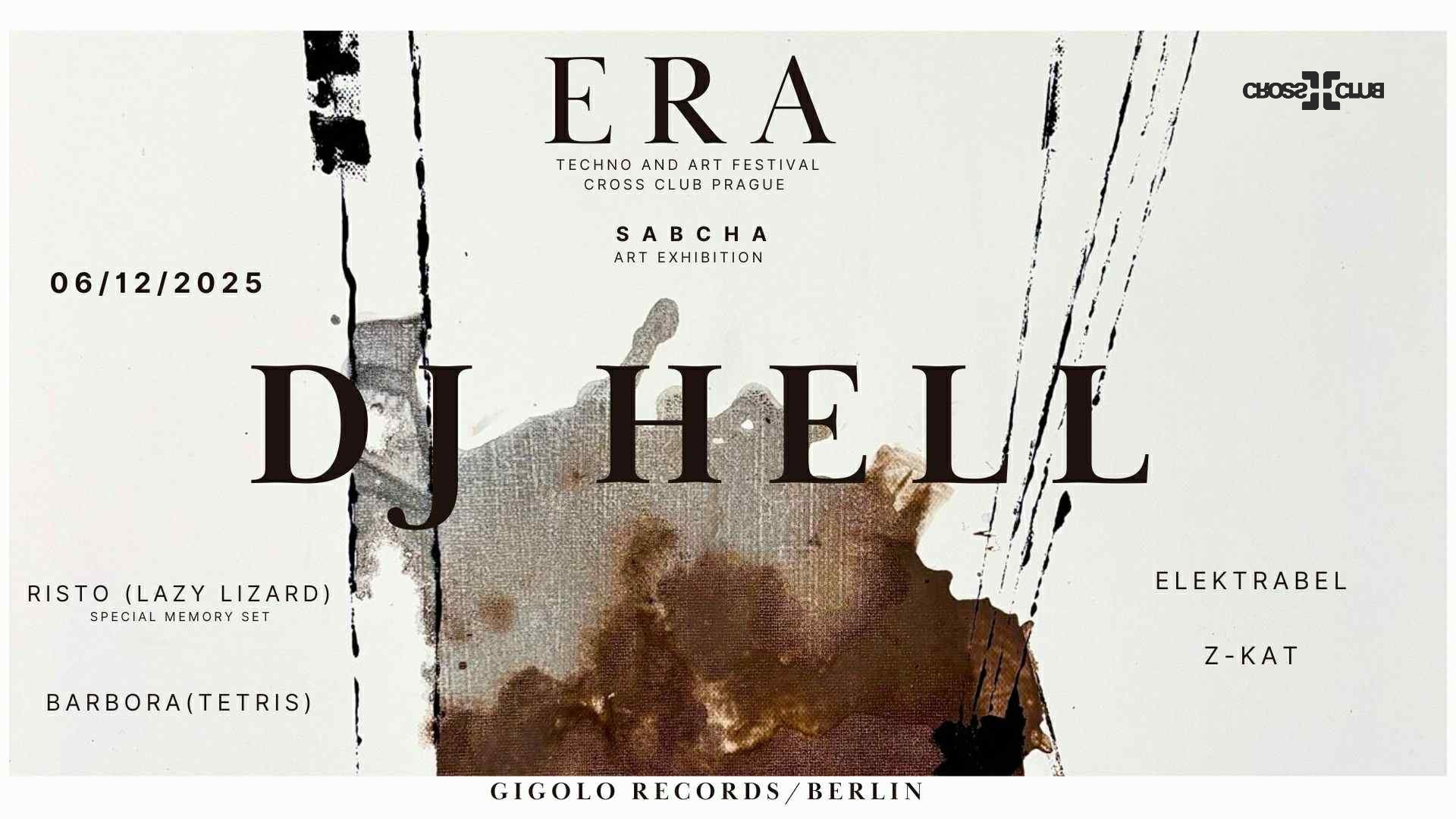 DJ HELL (Gigolo records) hudební legenda, producent, mistr zvuku a zásadní postava elektronické hudby míří 6.12.2025 do Prahy do klubu Cross! V rámci výstavy ERA výtvarnice Sabcha v kavarně klubu Cross a klubu (01/11/2025- 05/01/2026) se právě v sobotu 6.12.2025 sejde nevídaná skladba skvělých djs: