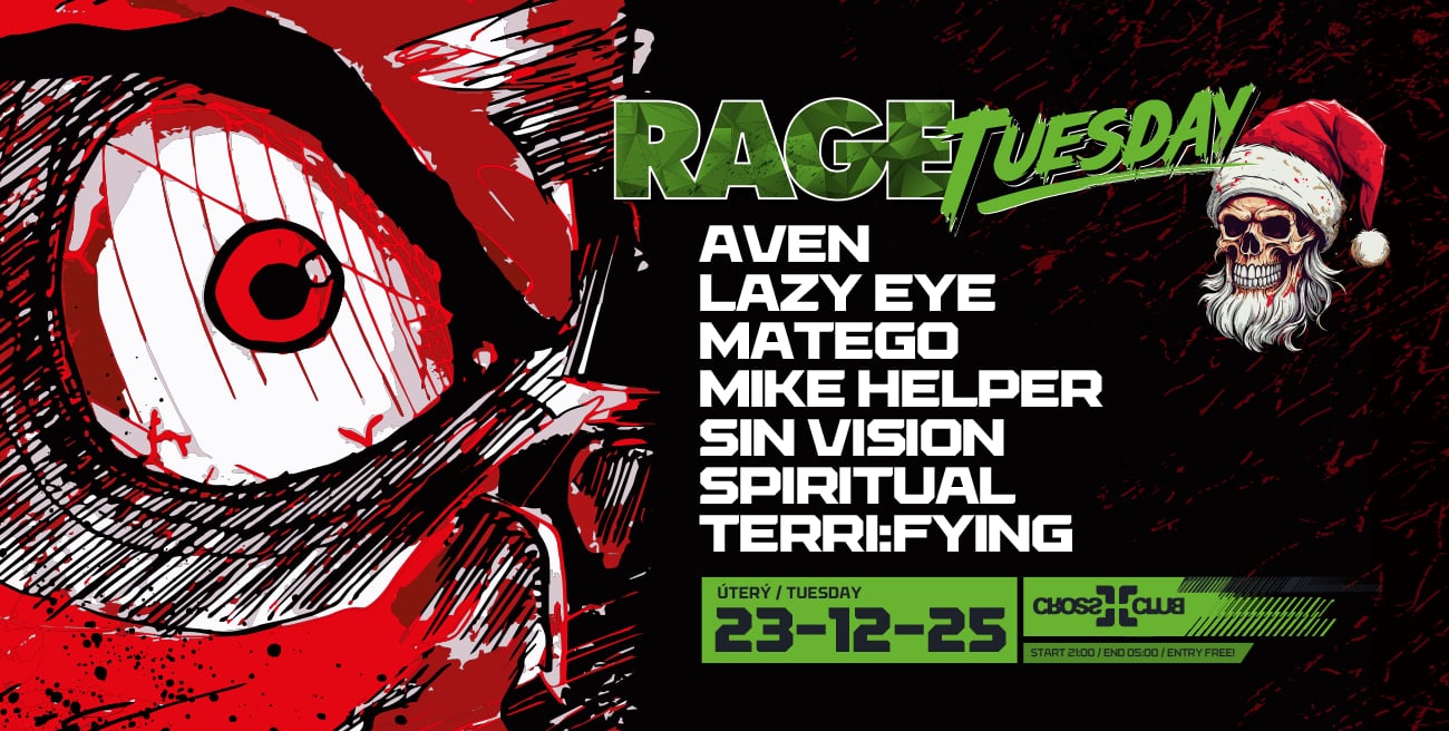 Poslední Rage Tuesday proběhne v předvánočním duchu v Crossu v rytmu veškerých subžánrů drum and bassu. Na závěrečný mejdan Rage Tuesday v roce 2025 dorazí zástupci Bassídka crew, Hefty Mess nebo třeba Salty Crew. Dorazíš na tento poslední mejdan před Vánoci?