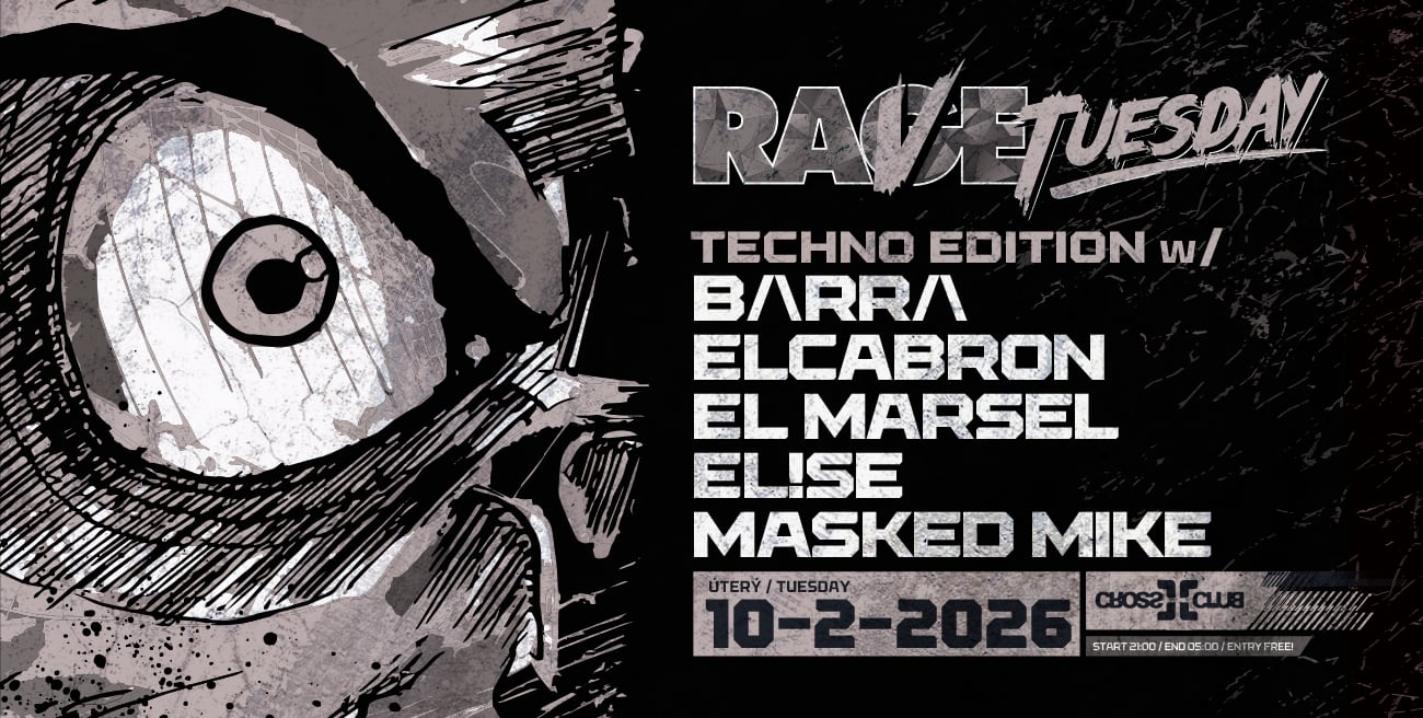 Únorová techno edice Rave Tuesday s line-upem nejen z nováčku na scéně, ale i letitými dj's.